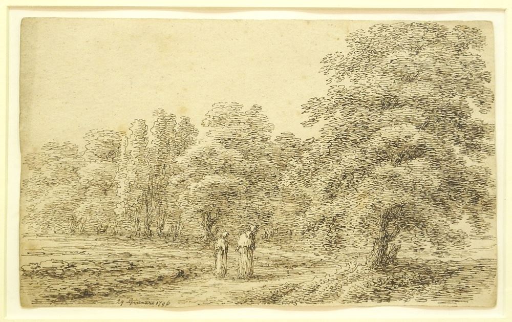 LOT 228 Drawing Dated 1796, 6 1/4 x 10 1/2", "Two Figures in Landscape". Estimate: $100 - $150 Sold For: $100 Auction Date: Tuesday, October 17 2023 at 4:00 PM