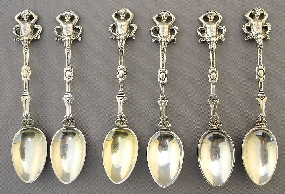LOT 54 6 Hallmarked Silver Figural Coffee Spoons, 106 grams. Estimate: $60 - $100 Sold For: $90 Auction Date: Tuesday, October 17 2023 at 4:00 PM