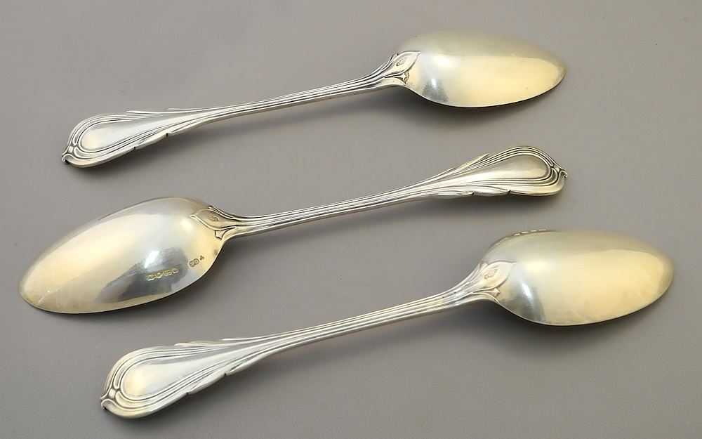LOT 55 3 Hallmarked Silver Table Spoons, 8 3/4"L, 300 grams. Estimate: $200 - $300 Sold For: $180 Auction Date: Tuesday, October 17 2023 at 4:00 PM