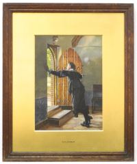 LOT 201 Watercolour Signed EKJ 1868 (Edward Killingworth Johnson), 12" x 8 1/2", "Waiting". Estimate: $150 - $300 Sold For: $200 Auction Date: Tuesday, October 17 2023 at 4:00 PM