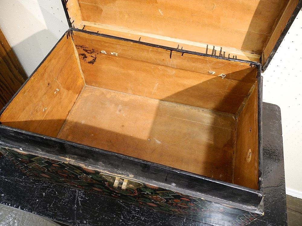 Chinese Painted Leather Chest, 12 1/8" x 24 3/4" x 16 1/8", (some splitting noted).