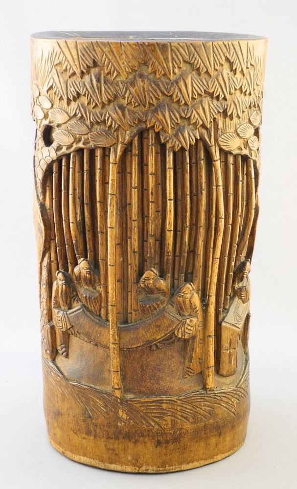 Chinese Bamboo Brush Pot, 10 1/4" H.