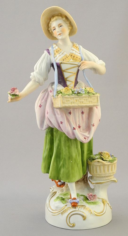 LOT 172 German Porcelain Figurine of a Flower Seller (minor nibbles), 9 1/4"H. Estimate: $50 - $60 Auction Date: Tuesday, October 17 2023 at 4:00 PM