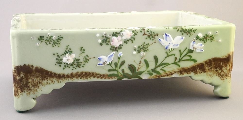 LOT 167 Celadon Porcelain Planter Trough, 4 1/8" x 11 5/8" x 7 3/8". Estimate: $60 - $100 Sold For: $60 Auction Date: Tuesday, October 17 2023 at 4:00 PM