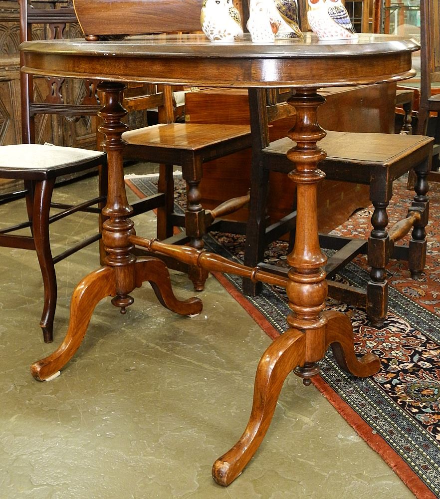 Victorian Walnut Oval Sofa Table, 28 3/8 x 35 1/2 x 21".