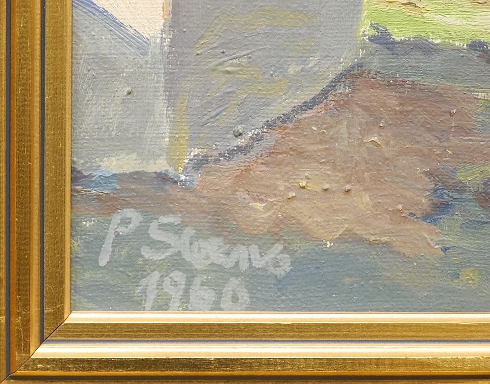 Oil on Canvas Signed P. Sleenvo 1960, 12 3/4" x 16 3/4", "Untitled- Scandinavian Church".