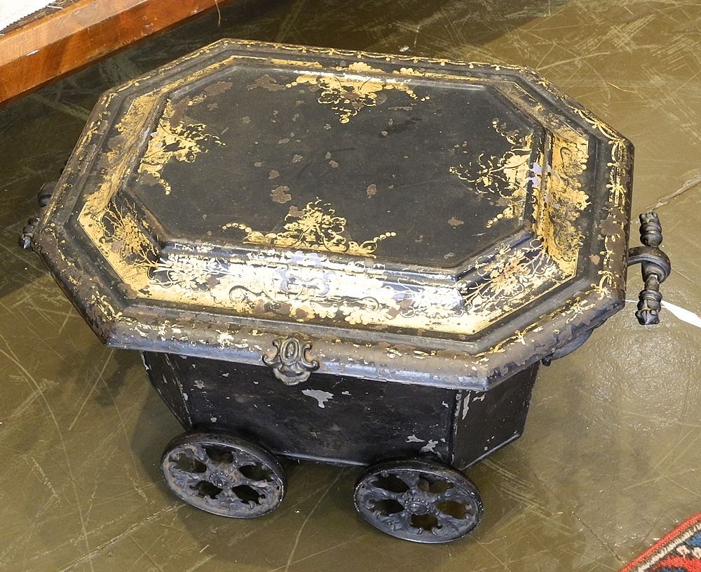 LOT 2 English Tole Ware Coal Hod, 14 1/8 x 24 x 17". Estimate: $400 - $500 Auction Date: Tuesday, October 17 2023 at 4:00 PM