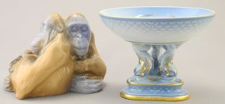 LOT 149 Royal Copenhagen Porcelain Orangutan Figure, 3 3/8"h. & A Bing & Grondahl Compote Estimate: $50 - $60 Sold For: $375 Auction Date: Tuesday, October 17 2023 at 4:00 PM