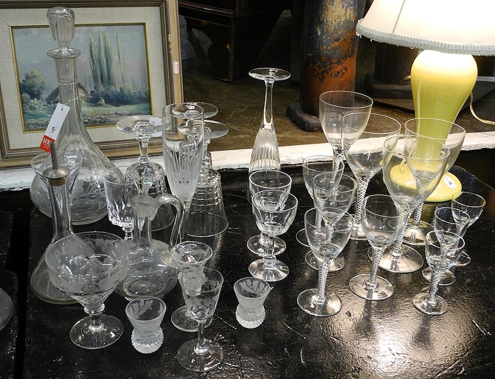Collection of Various Estate Crystals & Glasswares: Decanters/ Salts/Glasses/Etc.