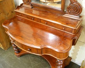 Victorian Mahogany Dresser and Mirror and Chair, 38 3/4"w.