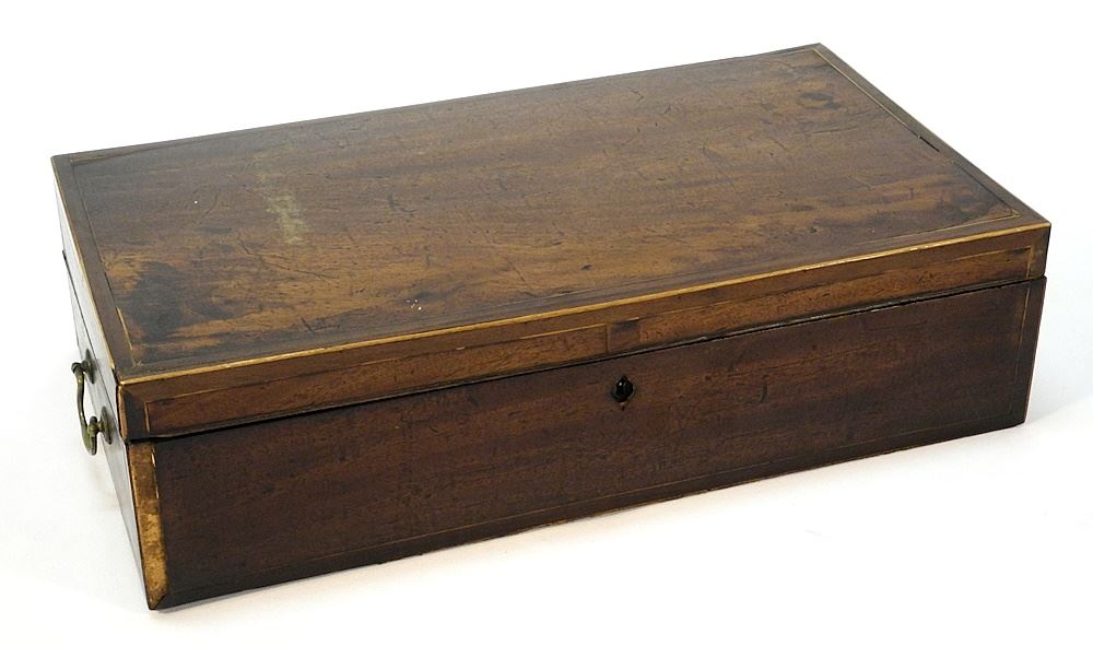 LOT 268 Sheraton Mahogany Lap Desk, Condition Noted, 5 1/4" x 20 1/8" x 11 1/8" Estimate: $80 - $100 Sold For: $90 Auction Date: Tuesday, October 17 2023 at 4:00 PM