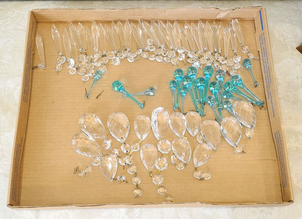 8 Branch Glass Chandelier, 24" Diameter with Crystals.