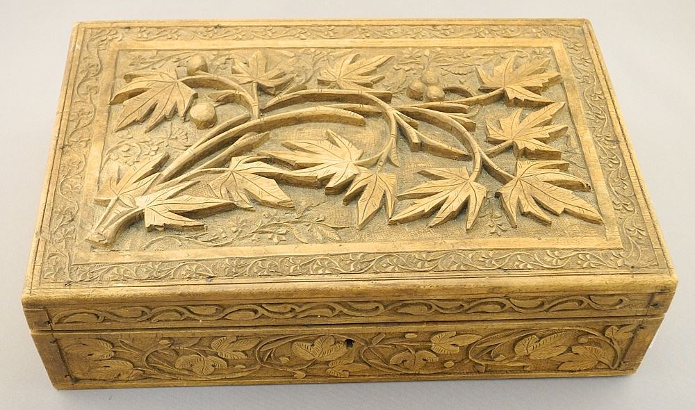 Carved Wood "Leaf & Berry" Box, 3 5/8" x 11 3/4" x 7 3/8".