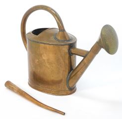 LOT 1 Copper Watering Can with Secondary Spigot, 19 1/2" l. Estimate: $60 - $100 Sold For: $200 Auction Date: Tuesday, October 17 2023 at 4:00 PM
