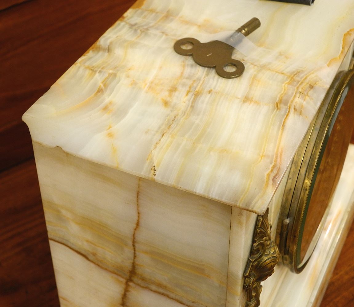 Waterbury Clock Co. Onyx Clock With Appliques, 12 1/2".