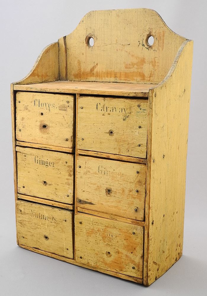 19th Century Wall Mounted Pine Spice Box, 12 1/2" h.