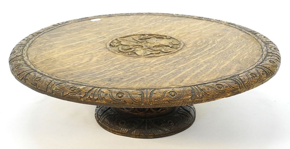 Carved Oak Lazy Susan, 5 1/2' x 18 1/2" Diameter.