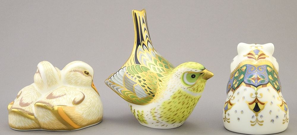 LOT 250 6 Royal Crown Derby Paper Weights: Goslings, Finch, Guinea Pig, Hamster Imari Ram, etc. Estimate: $100 - $200 Sold For: $130 Auction Date: Tuesday, October 17 2023 at 4:00 PM
