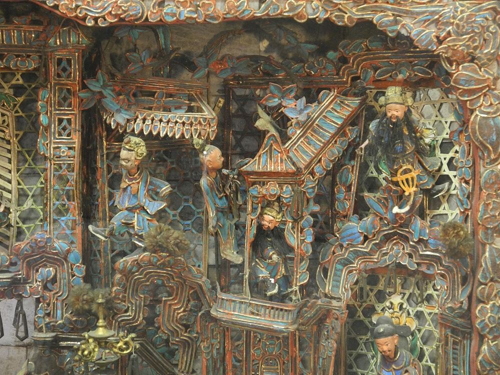 Chinese Kingfisher Feather Operatic Diorama, Framed 29 1/2" x 30 1/2" x 5 1/2".