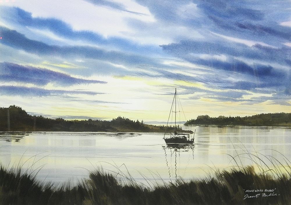 Watercolour signed Grant Fuller, 15" x 20 3/4", "Homeward Bound".