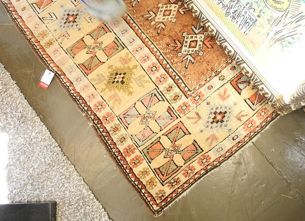 Hand Knotted Turkish Carpet, Pale Yellow Border, Approximately 5'10" x 3'5".