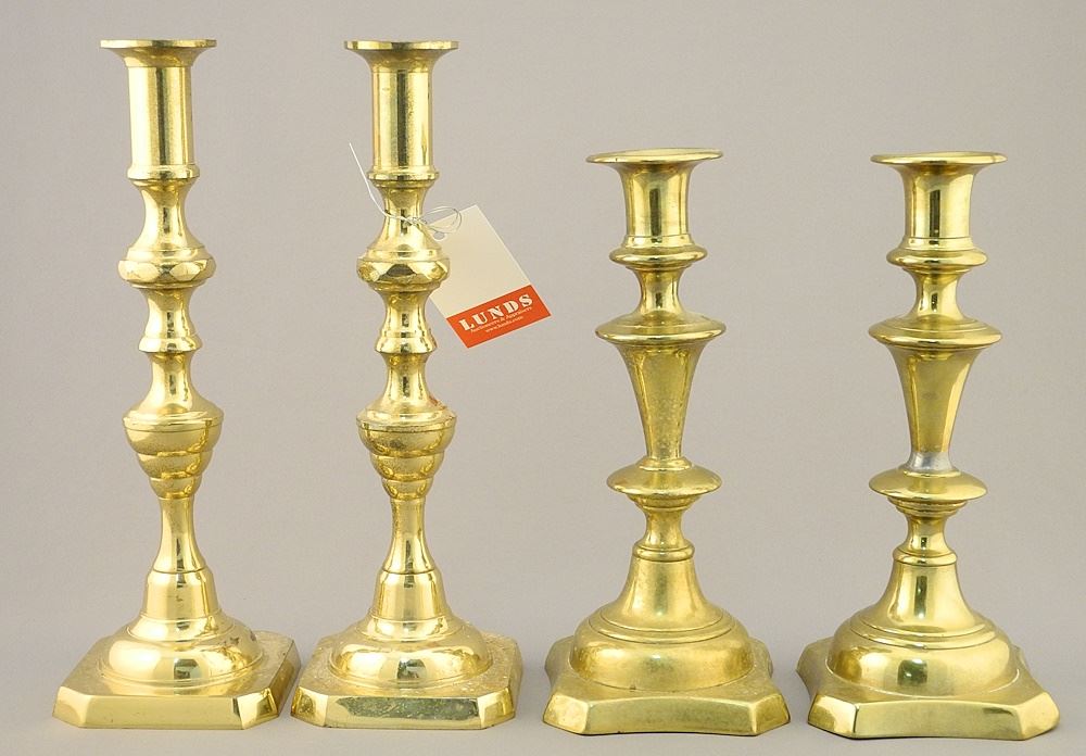 Collection of Brass Wares: 2 Pair of Candlesticks / Egyptian Chambersticks / Horse Bras