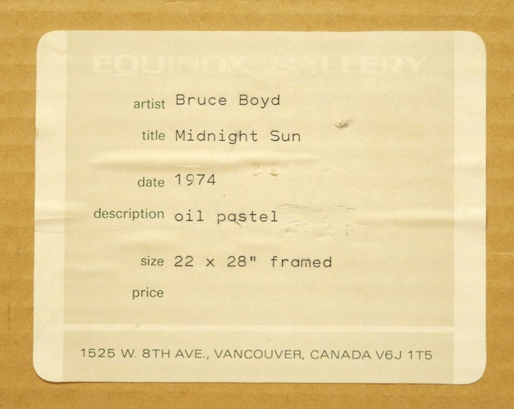 LOT 169 Oil Pastel, Bruce Boyd, "Midnight Sun" 1974. Estimate: $50 - $100 Auction Date: Tuesday, January 16 2024 at 4:00 PM