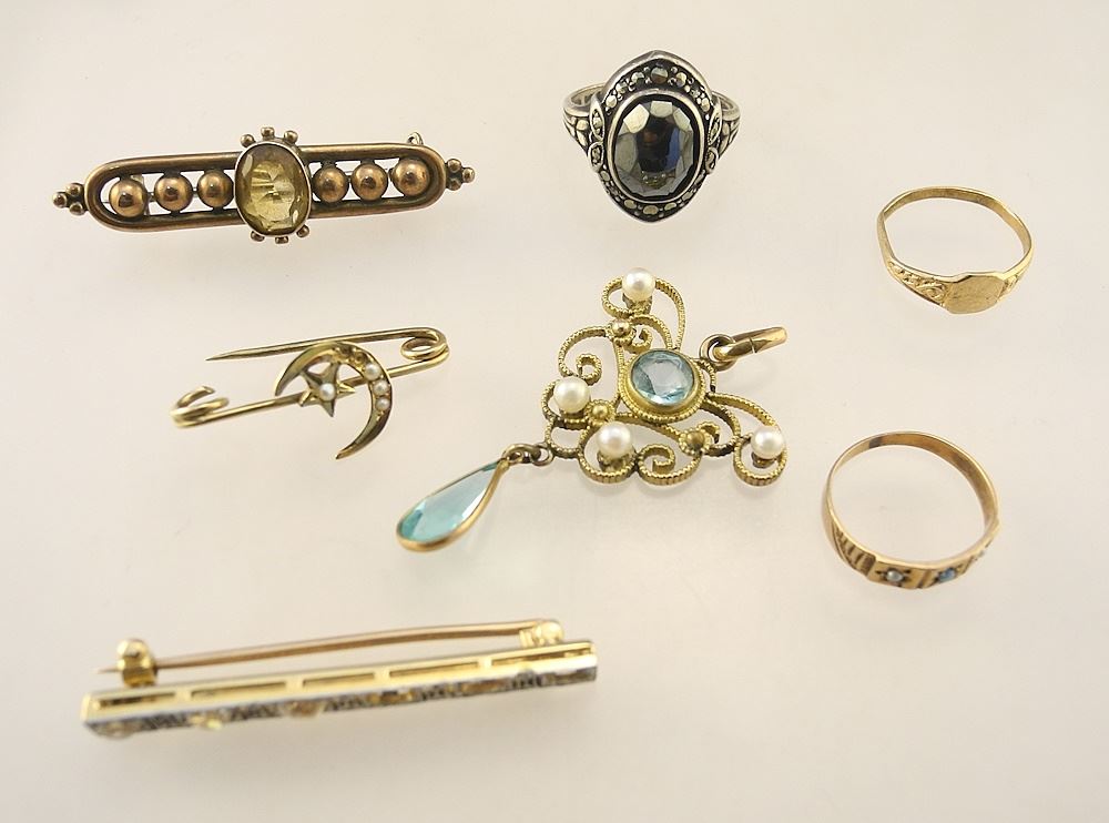 LOT 104 Collection of Gold & Other Pins & Jewelry Items, TW (7/16/22/23). Estimate: $200 - $300 Sold For: $250 Auction Date: Tuesday, January 16 2024 at 4:00 PM