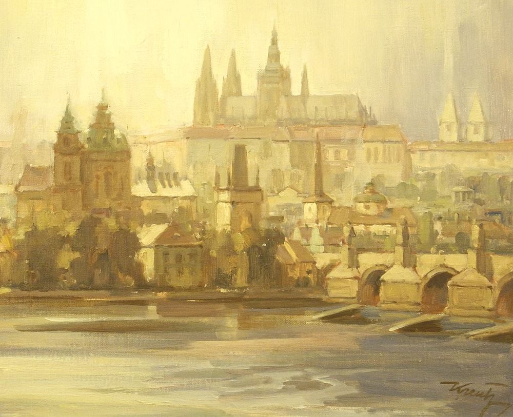 Oil on Canvas signed (Jan) Kreutz, 19 3/4 x 23 3/4", Untitled Cathedral