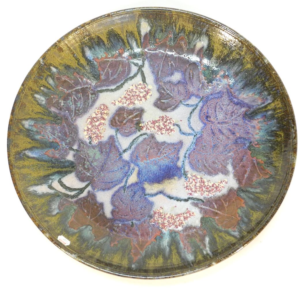 Japanese signed Stoneware Charger Acquired Mashiko 1966, 3 x 18 3/8" Diameter.