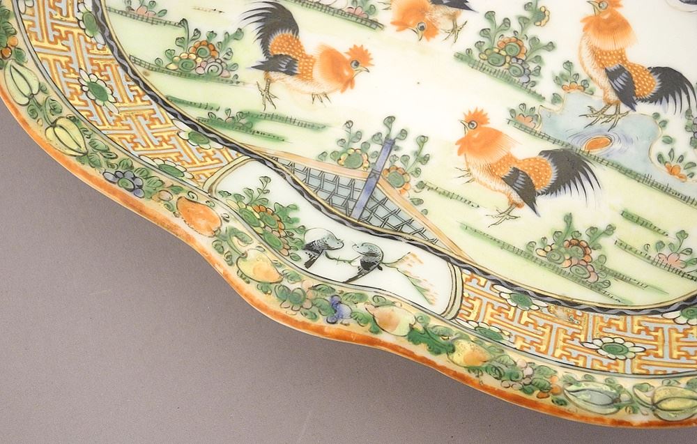Chinese Famille Rose Porcelain Dish, Mark Scratched Out, 10 1/2"W.
