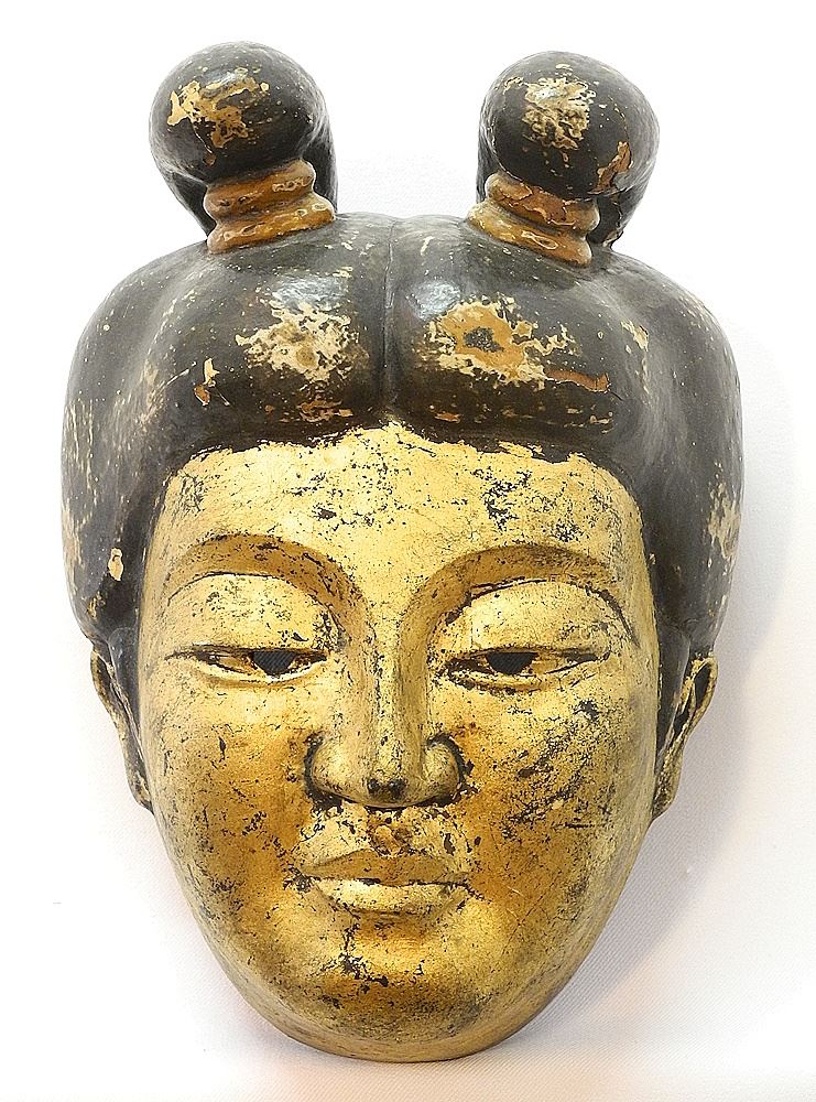 Japanese Noh Mask, Female, Gilt Composition, 12" x 8 1/8" x 5 3/8"