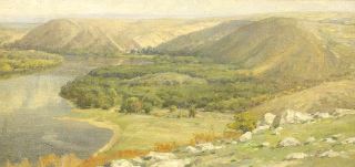 LOT 95 Oil on Canvas Attributed to Camille Leroy, 13 x 27 3/8", "Algeria Landscape". Estimate: $150 - $300 Auction Date: Tuesday, January 16 2024 at 4:00 PM