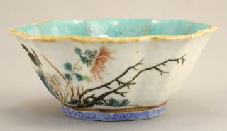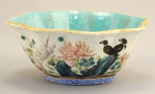 Chinese Famille Rose Porcelain Lobed Bowl, Tongzhi Mark, 2 x 5" Diameter.