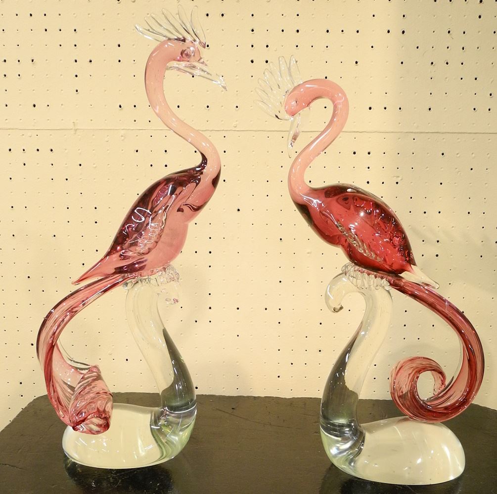 LOT 21 Pair of "Formia Murano" Glass Birds of Paradise, 24 1/2"H. Estimate: $600 - $1,000 Sold For: $550 Auction Date: Tuesday, January 16 2024 at 4:00 PM
