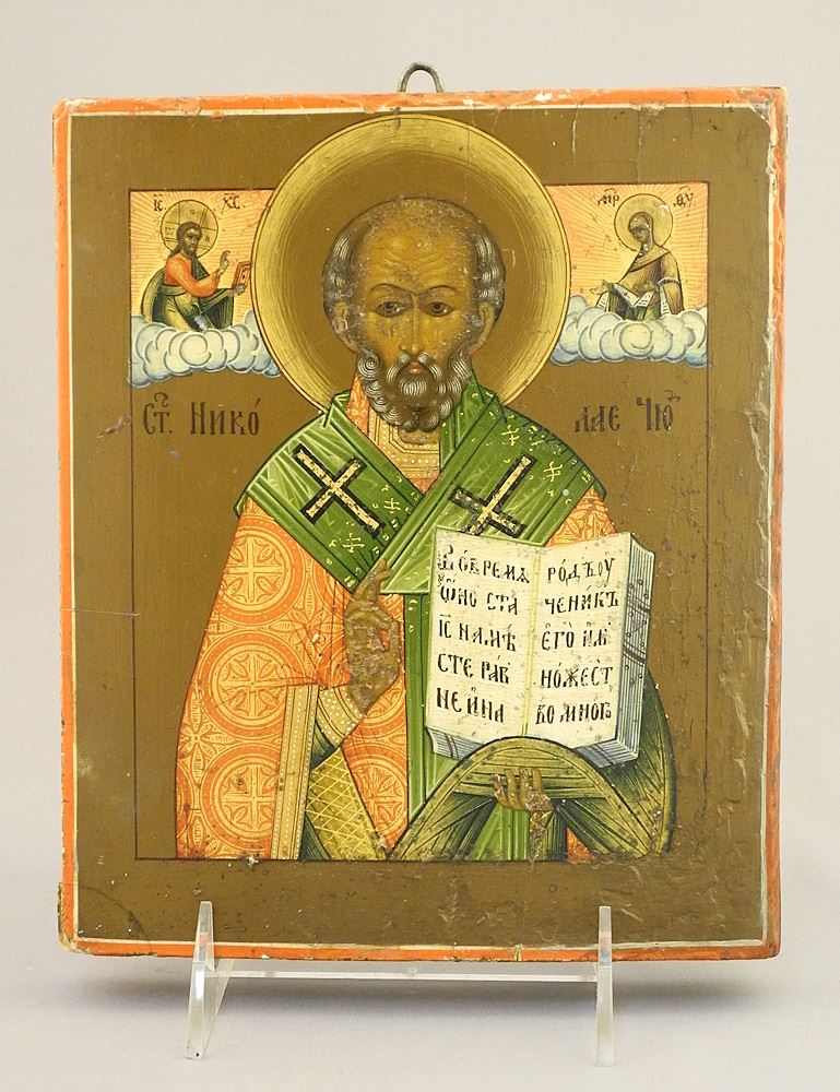 Russian Icon of St. Nicholas, 7 7/8" x 6 3/4 x 1".