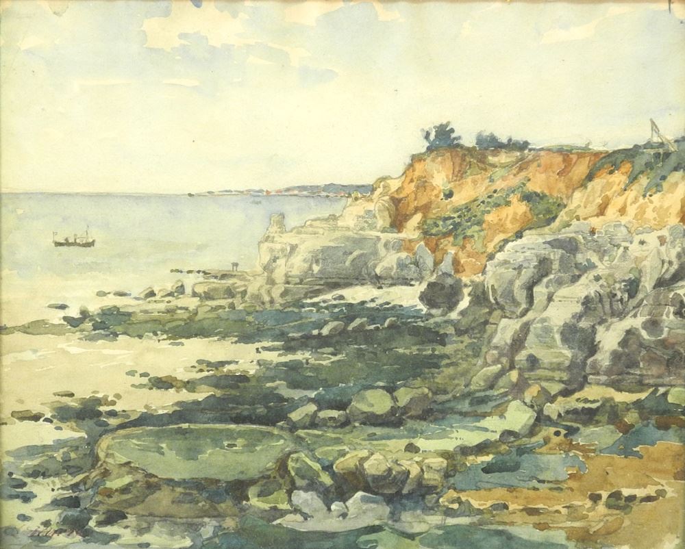 Watercolour signed L.(Louis) Beviere , 9 3/8 x 11 1/2", "French Coastal Scene".
