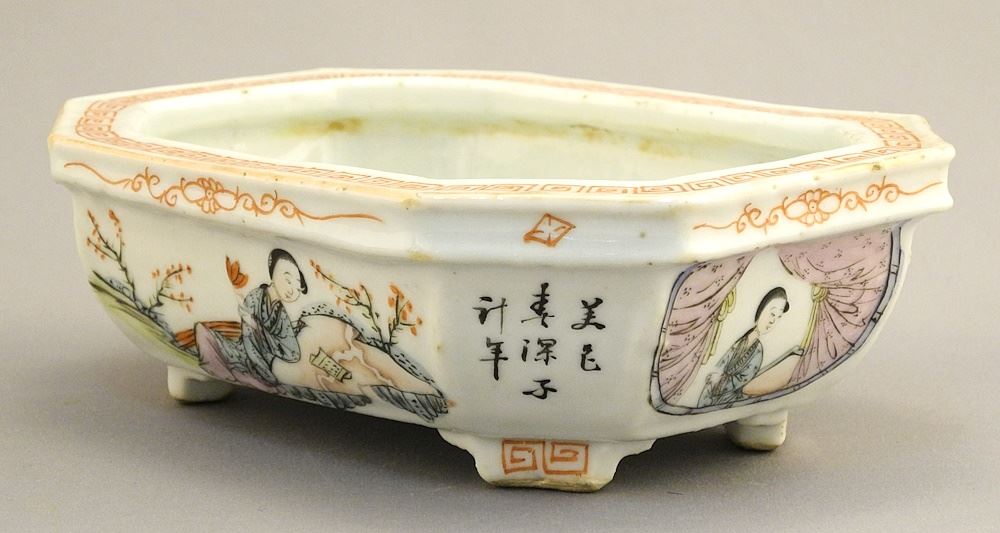 Chinese Famille Rose Porcelain Planter, Tongzhi Mark, 2 1/8 x 6 3/8 x 4 1/2".