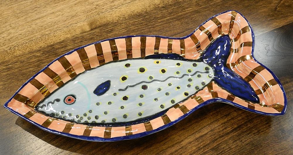 LOT 187 Pottery Dish signed S. (Sandra) Millot '88, 20 1/4"W, "Fish Design". Estimate: $80 - $120 Sold For: $70 Auction Date: Tuesday, January 16 2024 at 4:00 PM