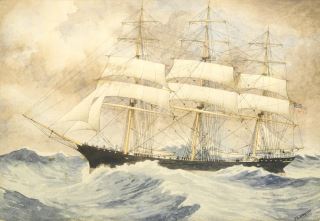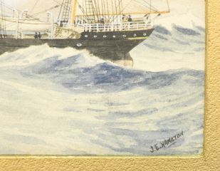 Watercolour signed J.E. Hamilton, 7 1/8" x 10 1/2", "Tall Ship, High Seas".