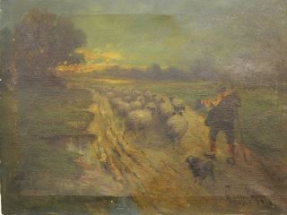 Oil on Canvas signed G. Thompson Pritchard, 18" x 24", "Shepherd Returning Flock".