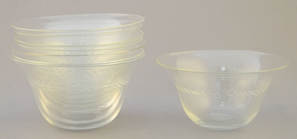 LOT 236 Collection of Antique Glass Wares: 6 Goblets (6 1/2"H) & Finger Bowls. Estimate: $100 - $120 Sold For: $90 Auction Date: Tuesday, April 09 2024 at 4:00 PM