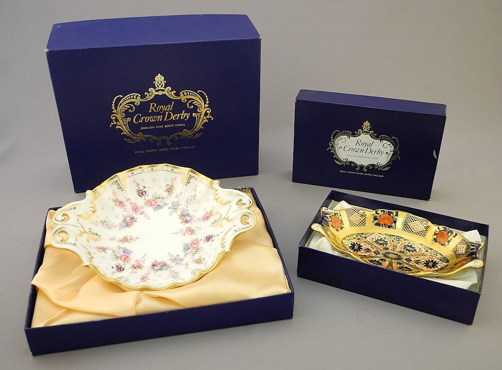 LOT 221 Oak Cased Fish Service & 3 Piece Royal Crown Derby Dishes, 2 with Cases. Estimate: $60 - $100 Sold For: $50 Auction Date: Tuesday, April 09 2024 at 4:00 PM