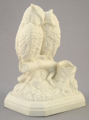 LOT 23 Parian Ware "Match Making" Owl Match Holder, 7 3/4". Estimate: $50 - $70 Sold For: $90 Auction Date: Tuesday, April 09 2024 at 4:00 PM