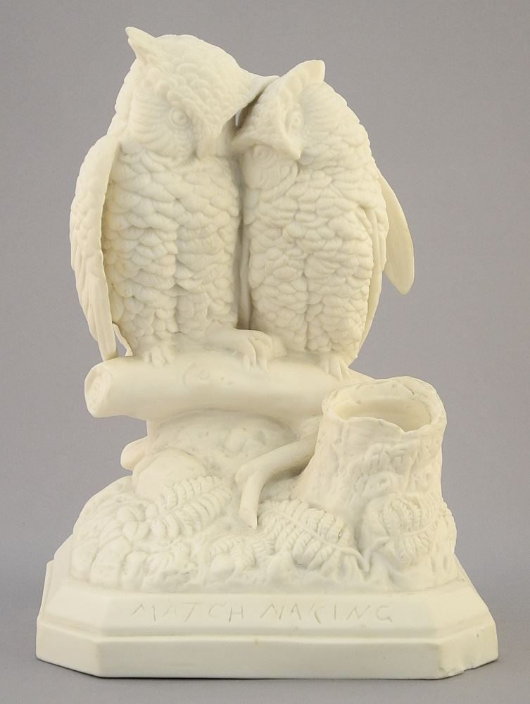 Parian Ware "Match Making" Owl Match Holder, 7 3/4".