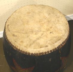19th C. Barrel Drum Painted with Gold & Red Stars, 18"D.