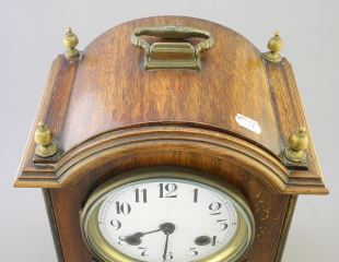 Mahogany Mantle Clock with DRGM113027 Movement, 11 1/2" x 8 3/4 x 5 1/2".