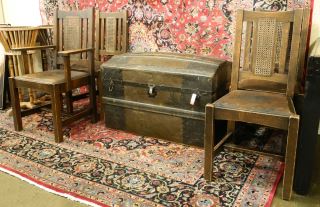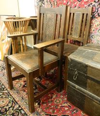 4 Cane Inset Arts & Crafts Oak Dining Chairs.