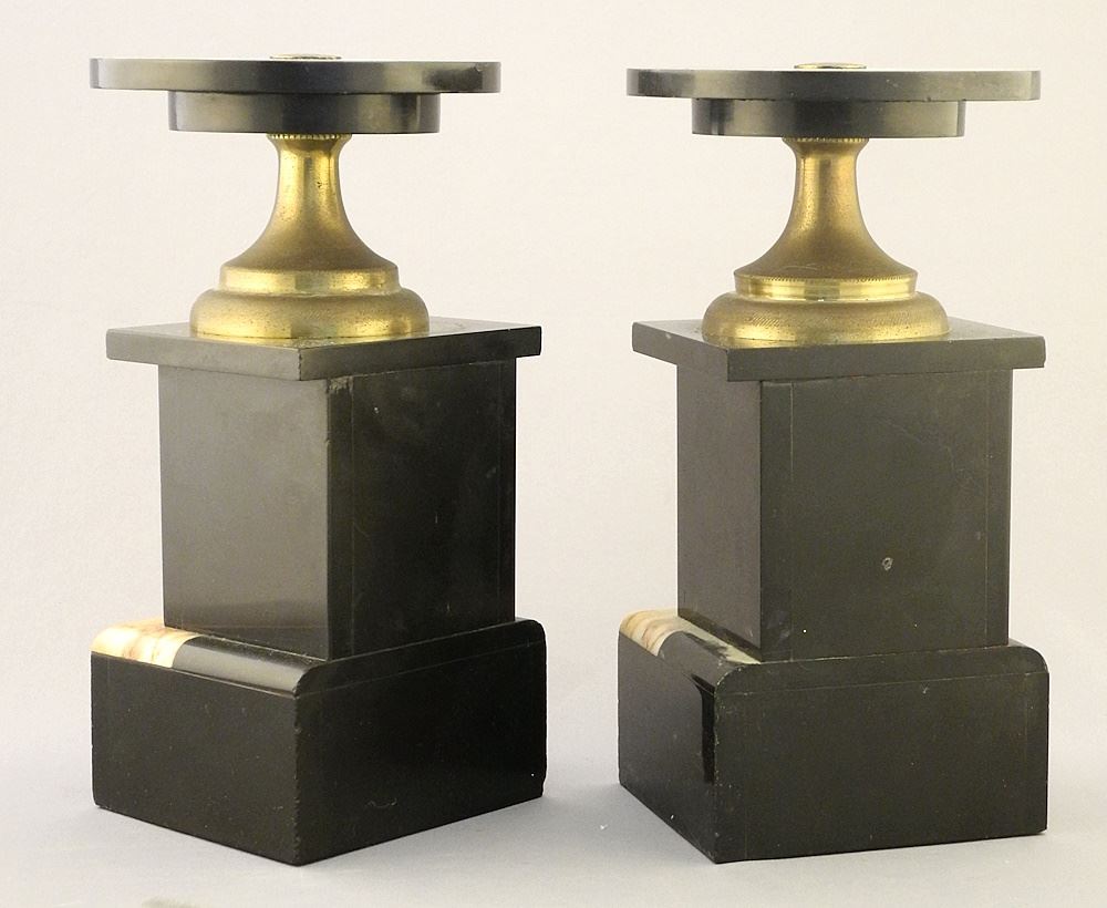 LOT 220 Pair of Black & Brown Marble Garnitures, 3 1/2" x 3" x 7 1/2". Estimate: $80 - $120 Sold For: $70 Auction Date: Tuesday, June 11 2024 at 4:00 PM