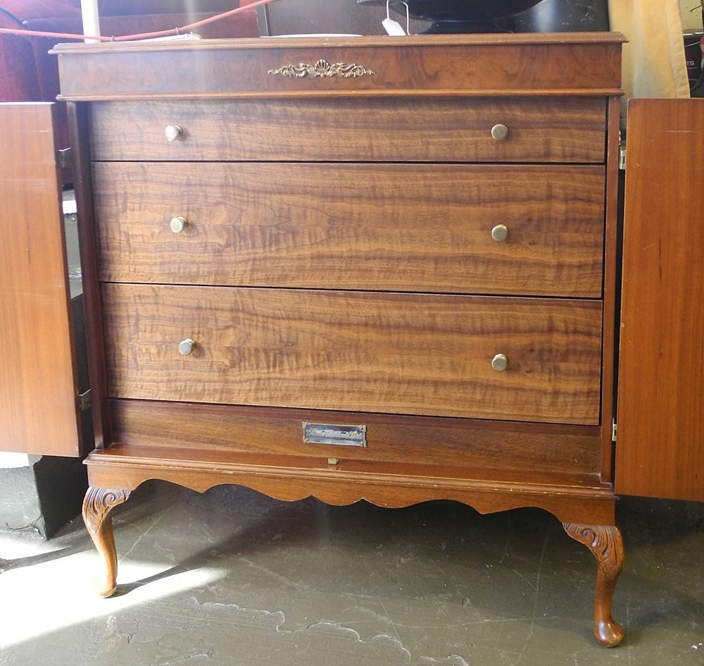 Period Cabinet Ltd. Banded Burl Walnut Cabinet Chest on Legs, 37"L.